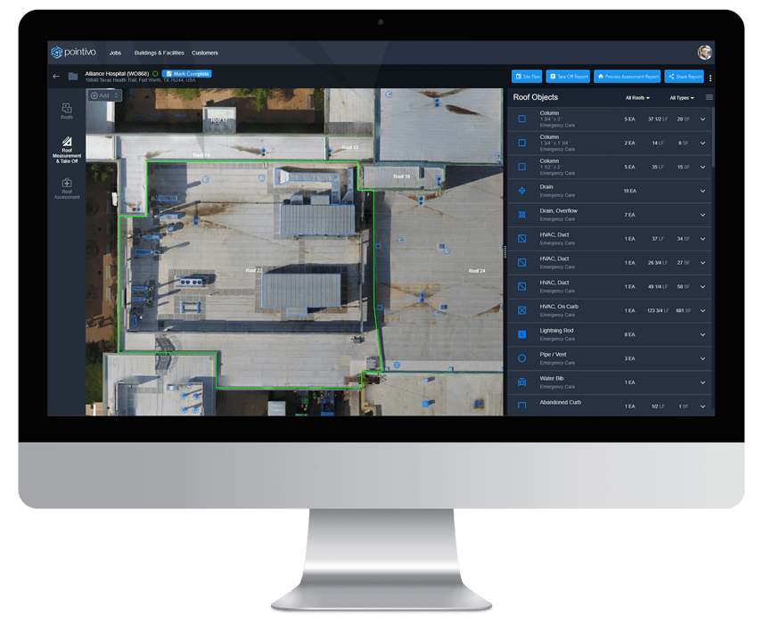 Pointivo’s cloud-based platform helps facility managers drastically reduce emergency repairs with immediate access to the condition of their roof and building exteriors across their entire portfolio. With a centralized database showing inventory and deficiency reports, managers can prioritize and group maintenance projects to streamline contractor bidding and reduce excessive capital investment.