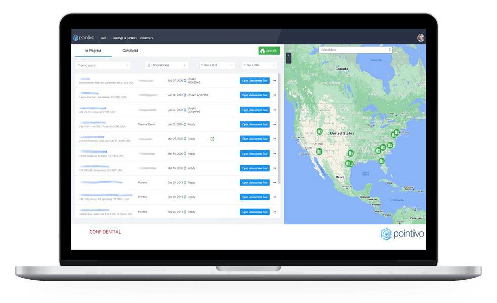 Pointivo improves the way customers manage facilities through proactive inspection and maintenance assessments technology. Our team delivers fast, accurate exterior assessments through an automated platform that combines artificial intelligence data with high-resolution 2D and 3D imagery. Clients gain the insight they need to transition their maintenance process from reactive emergency repairs to a more thorough and detailed facilities management process.
